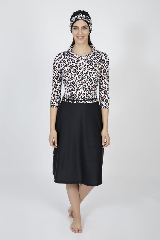 Modest Chic Swimsuit – Short Leopard Print Design