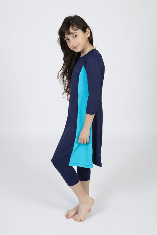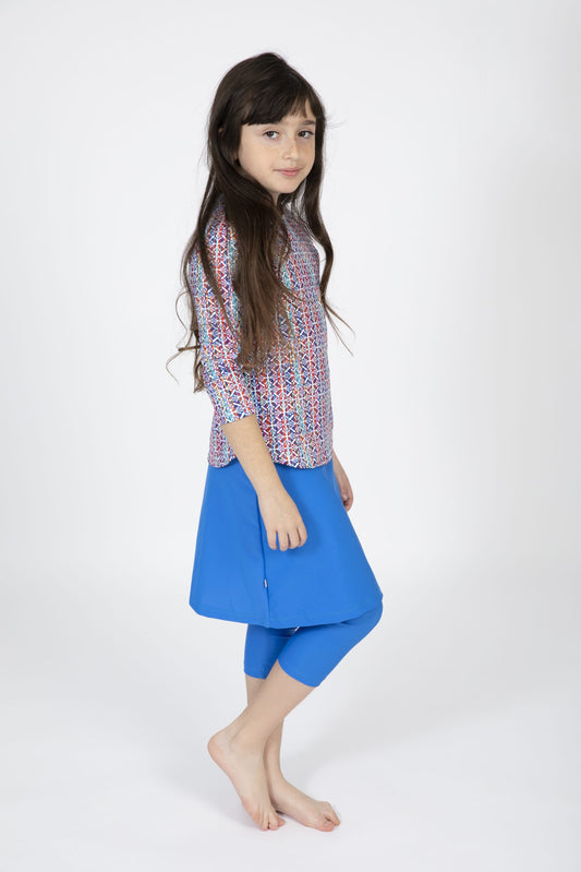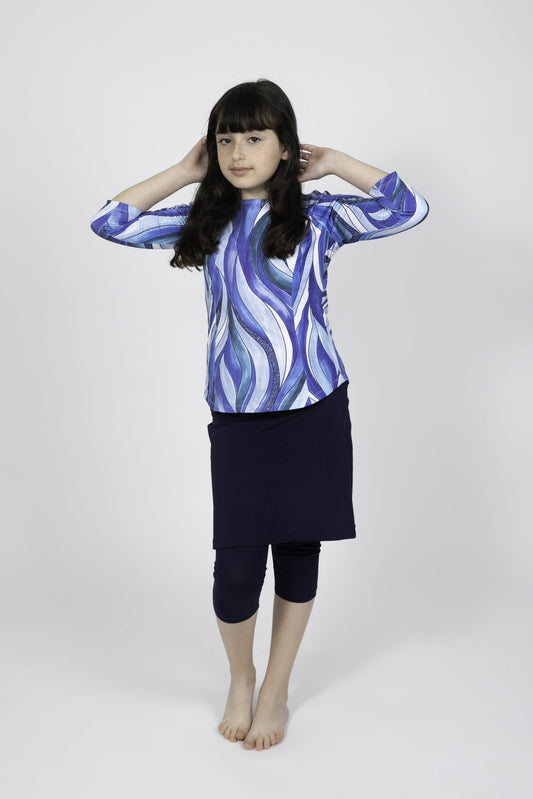 Girls’ Shirt and Skirt Set Blue with Ocean Waves