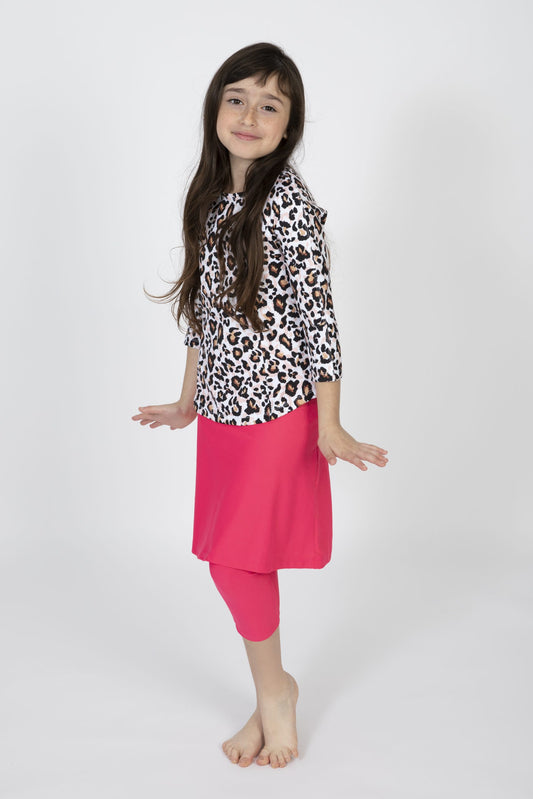 Girls’ Shirt and Skirt Set Pink and Leopard Print