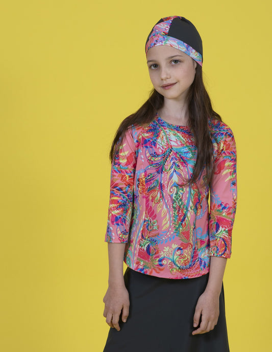 Girls’ Shirt and Skirt Set with Stained Glass Pattern